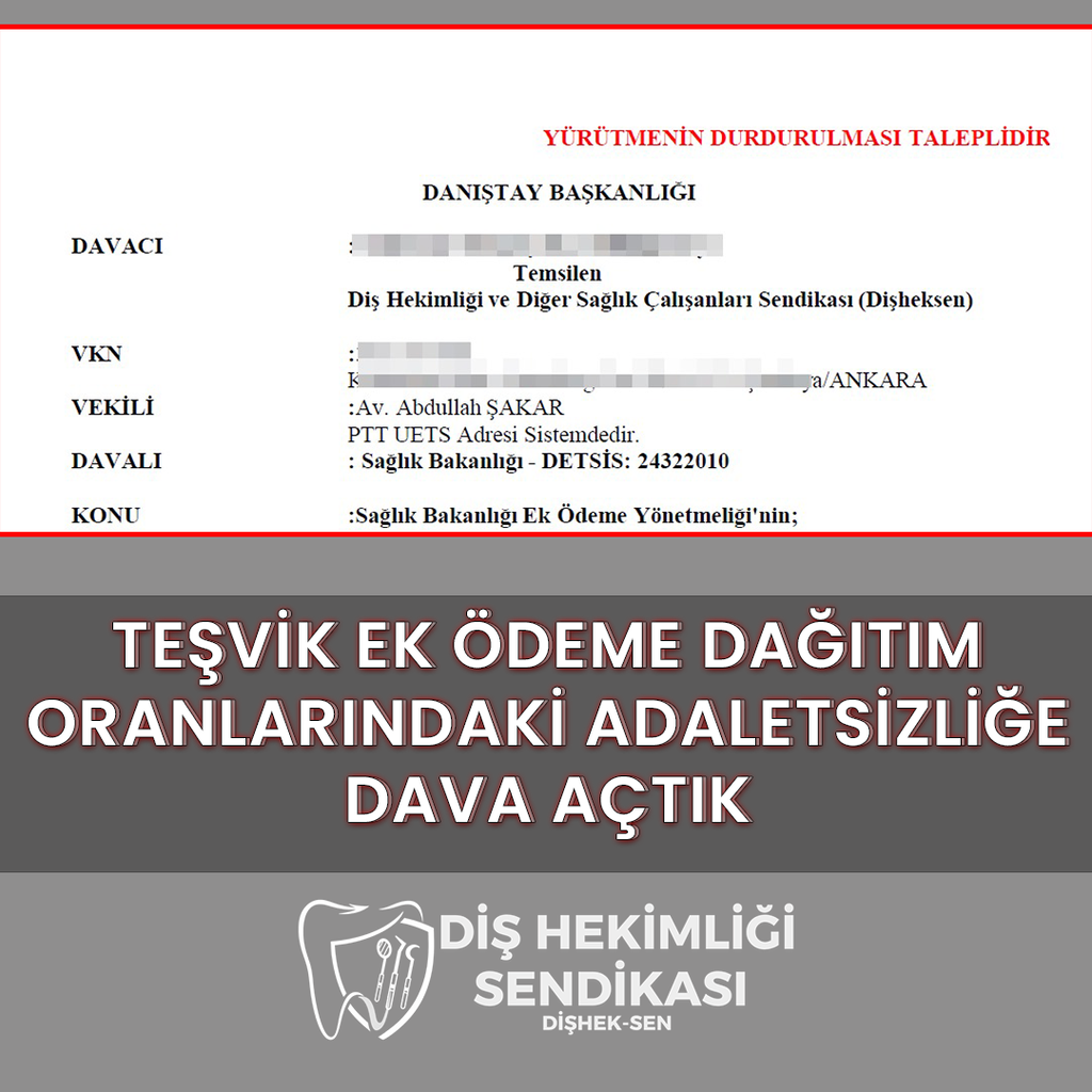 TEŞVİK EK ÖDEME DAĞITIM ORANLARINDAKİ ADALETSİZLİĞE DAVA AÇTIK.